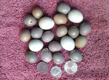 My breeding couple are Edwin and Zooey. Edwin, on the left, is 4 years old, and Zooey is about 18 months. She lays a little, cream-colored, spotted egg every other day, but isn’t very interested in sitting on them. Sometimes she and Edwin eat them! Last week I got inspired to incubate 5 of her eggs, and when I mentioned my plan to a local pet store owner, he offered me some of his eggs. Soooo, my clutch of 5 grew to a clutch 20! The light one’s in the photo are Zooey’s, the dark ones are from the pet store.